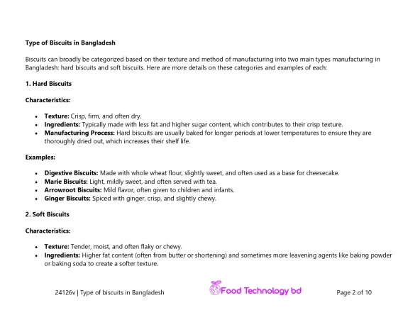 Biscuits can broadly be categorized based on their texture and method of manufacturing into two main types manufacturing in Bangladesh: hard biscuits and soft biscuits. Here are more details on these categories and examples of each: